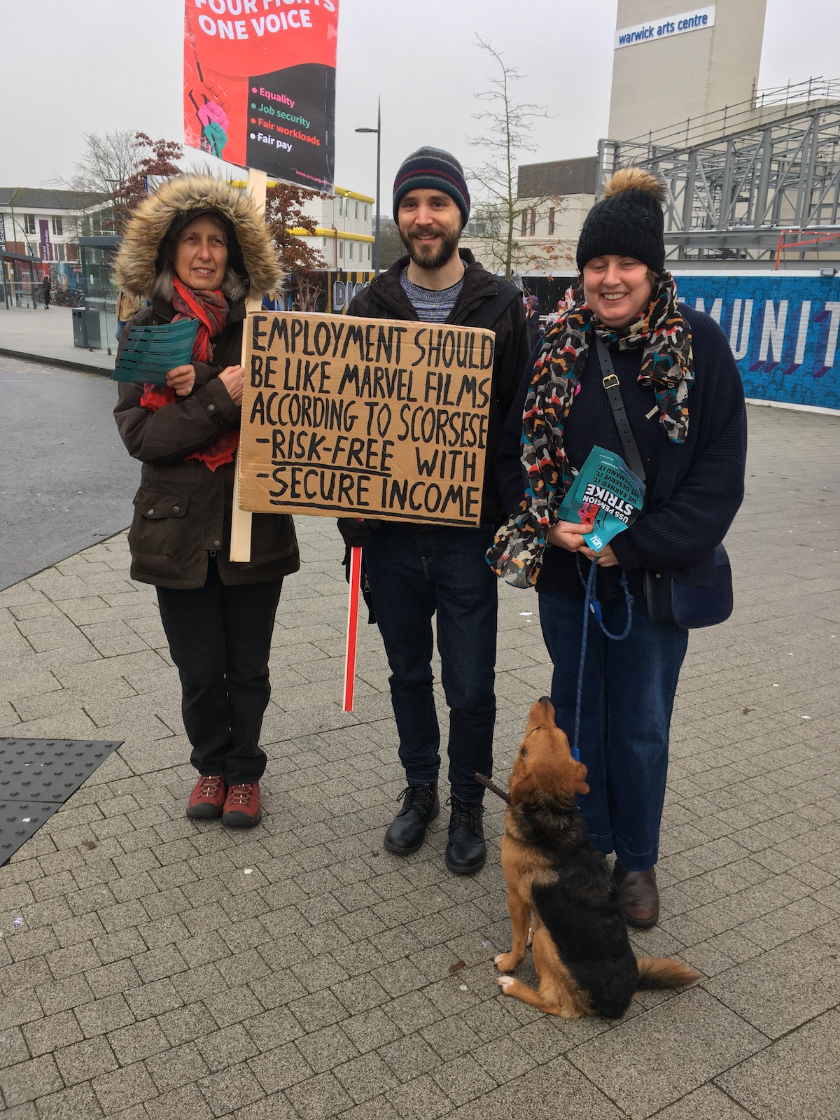 We were also lucky enough to have the National Educator’s Union (NEU) join us on the picket line and Emma Mort, the Warwickshire District Secretary gave a speech, highlighting the absurdity of universities putting money into capital projects instead of education. Warwick Occupy also came for a visit and gave a moving speech that drew links between our struggles and the anti-racist and anti-colonial struggles they are currently waging.